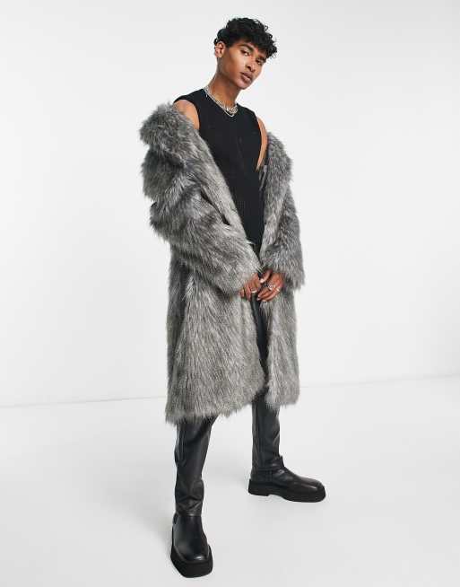 ASOS DESIGN – Szary płaszcz oversize o wydłużonym fasonie ze sztucznego futra