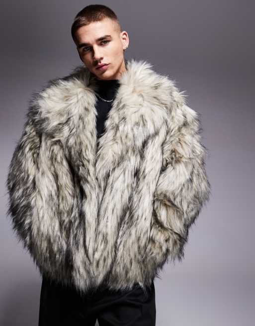 ASOS DESIGN – Szary płaszcz ze sztucznego futra z białym wykończeniem
