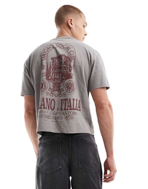 ASOS DESIGN – Szary sprany gruby T-shirt o luźnym kroju z nadrukiem na plecach