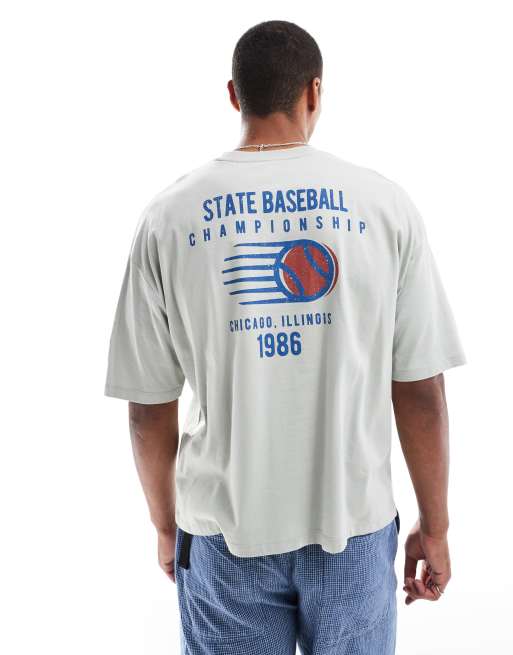 ASOS DESIGN – Szary T-shirt oversize o pudełkowym kroju ze sportowym nadrukiem na plecach