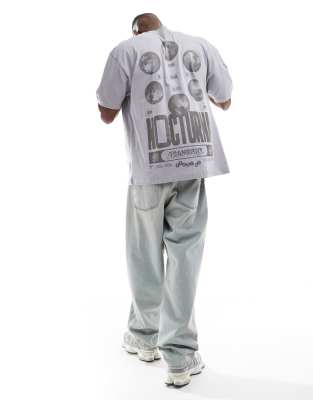 ASOS DESIGN – Szary T-shirt oversize z astrologiczną grafiką