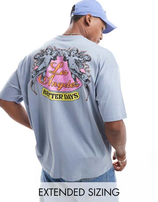 ASOS DESIGN – Szary T-shirt oversize z nadrukiem na plecach