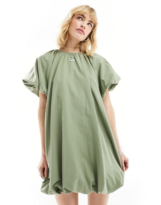 ASOS DESIGN – Szałwiowa luźna sukienka mini typu bufka