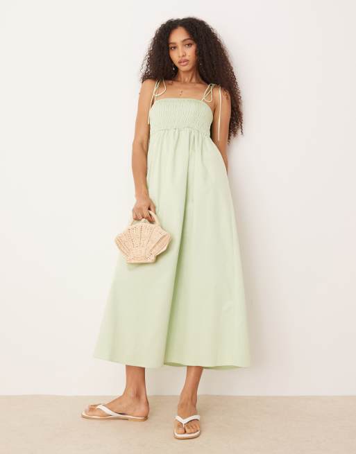 ASOS DESIGN – Szałwiowa marszczona na biuście sukienka midi z bawełnianej popeliny