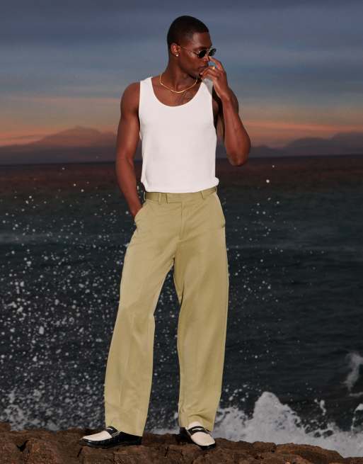 ASOS DESIGN – Szałwiowe eleganckie spodnie z szerokimi nogawkami