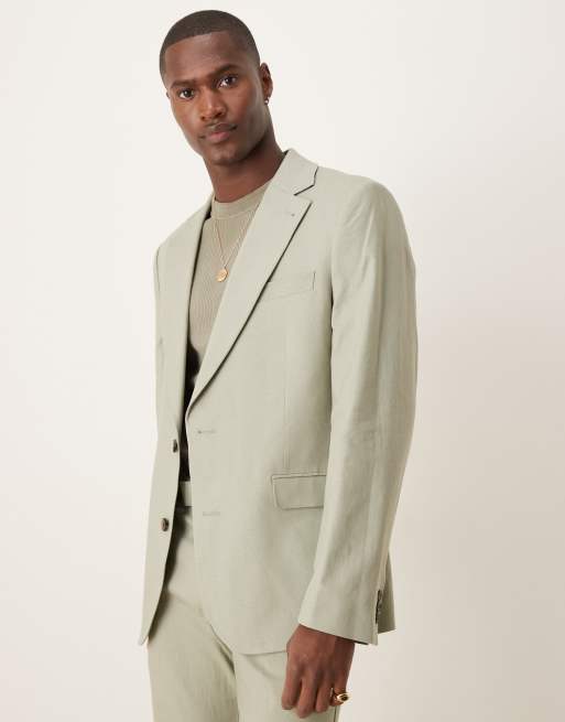 ASOS DESIGN – Szałwiowozielona dopasowana marynarka garniturowa z domieszką lnu