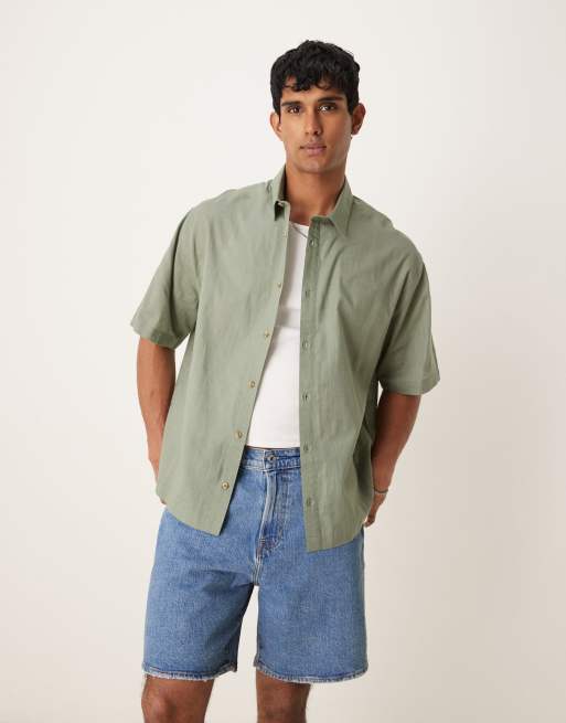 ASOS DESIGN – Szałwiowozielona koszula oversize o pudełkowym kroju z imtiacji lnu
