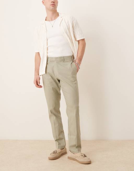 ASOS DESIGN – Szałwiowozielone eleganckie spodnie o dopasowanym kroju z mieszanki lnu