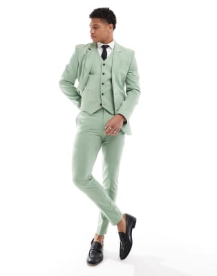 ASOS DESIGN – Szałwiowy garnitur o bardzo obcisłym kroju