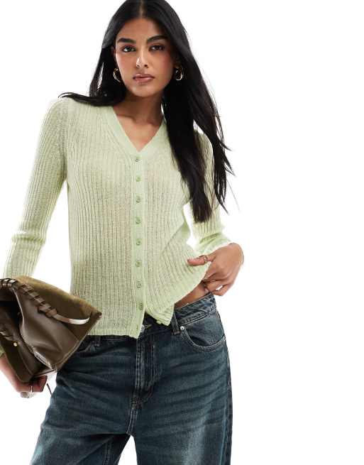 ASOS DESIGN – Szałwiowy kardigan z małym dekoltem w szpic