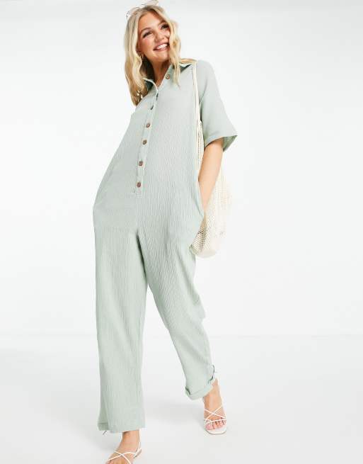 ASOS DESIGN – Szałwiowy kombinezon z koszulową górą i zapięciem na guziki