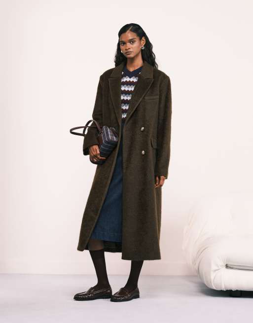 ASOS DESIGN – Szczotkowany płaszcz oversize o fasonie dad w ciemnym odcieniu khaki
