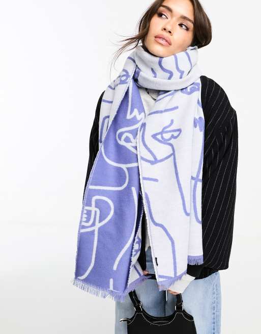 ASOS DESIGN – Szeroki niebieski szalik w żakardowy wzór w twarze