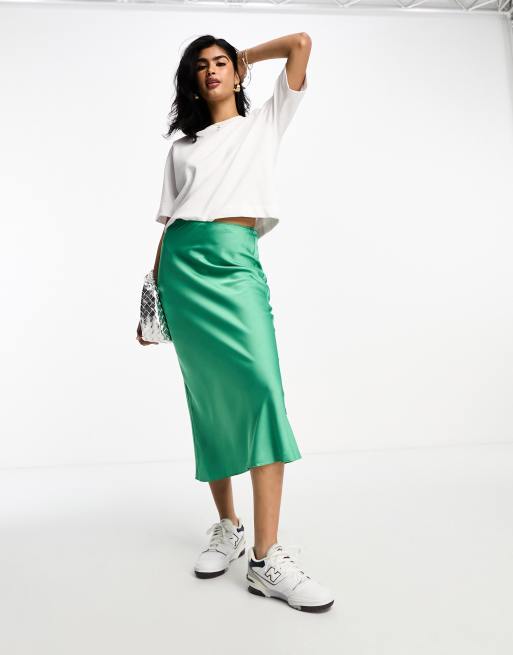 ASOS DESIGN – Szmaragdowa satynowa spódnica midi cięta ze skosu