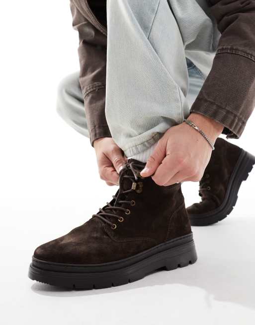 ASOS DESIGN – Sznurowane brązowe zamszowe botki na koturnie