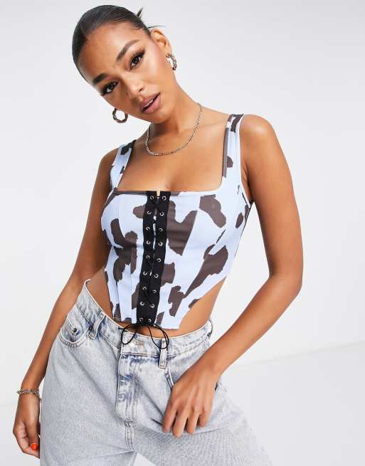 ASOS DESIGN – Sznurowany top gorsetowy w krowi wzór