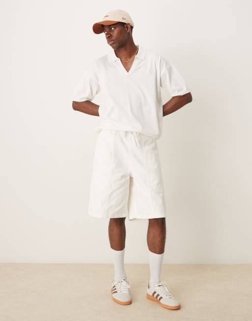 ASOS DESIGN – Szorty bojówki jeansowe ściągane na sznurek w kolorze ecru