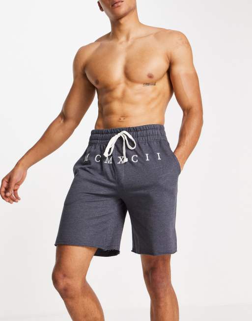 ASOS DESIGN – Szorty domowe z niewykończonym dołem z nadrukiem cyfr rzymskich