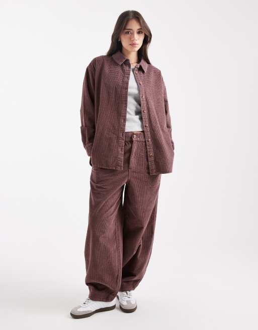 ASOS DESIGN – Sztruksowy zestaw w kolorze fioletoworóżowym: spodnie barrel i koszula