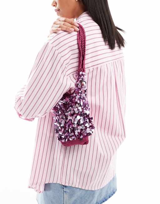 ASOS DESIGN – Szydełkowa różowa torebka do ręki z cekinami