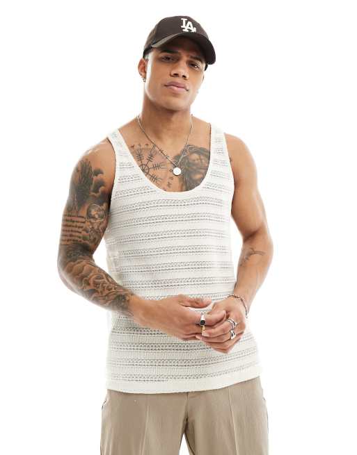 ASOS DESIGN – Szydełkowany top bez rękawów, w kolorze złamanej bieli
