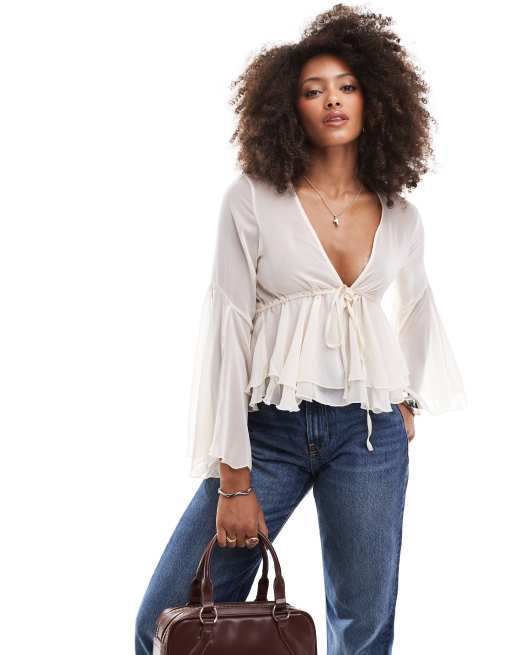 ASOS DESIGN – Szyfonowa bluzka z rozkloszowanymi rękawami, w kolorze ecru