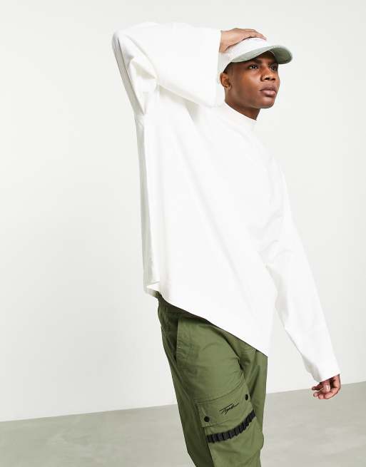 ASOS DESIGN – T-shirt extreme oversize z długimi rękawami i golfem w kolorze złamanej bieli