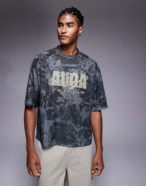ASOS DESIGN – T-shirt o luźnym pudełkowym kroju we wzór moro z grafiką tekstową