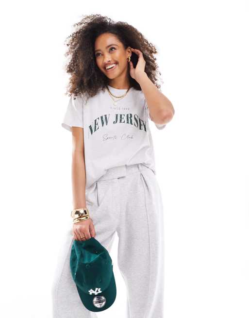 ASOS DESIGN – T-shirt o regularnym kroju w szarym melanżowym kolorze z napisem New Jersey