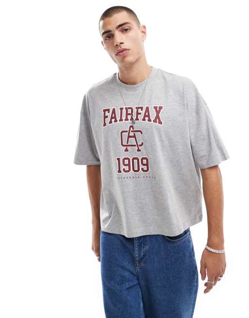 ASOS DESIGN – T-shirt oversize o pudełkowym kroju w brązowoszarym kolorze z nadrukiem w uczelnianym stylu z przodu