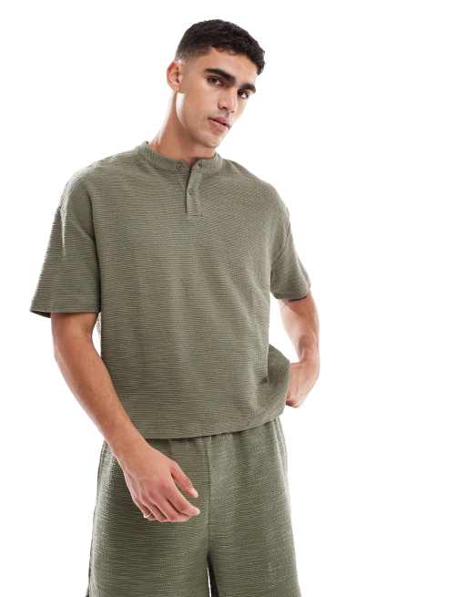 ASOS DESIGN – T-shirt oversize o pudełkowym kroju z dekoltem henley z dzianiny boucle, część zestawu