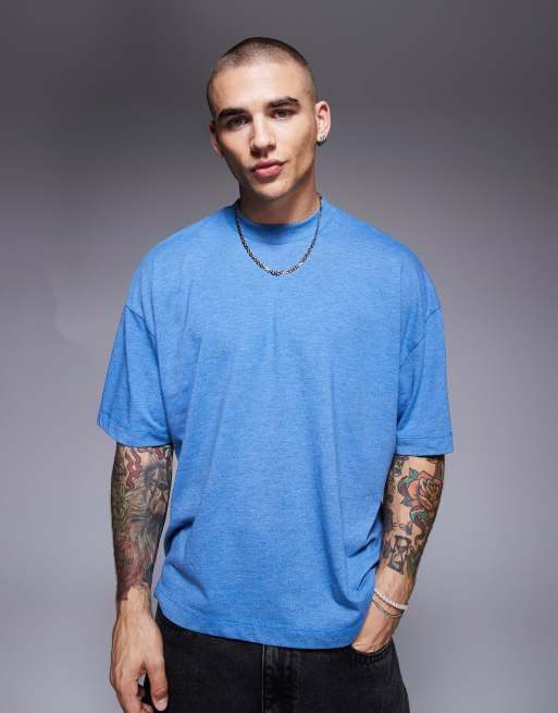 ASOS DESIGN – T-shirt oversize o pudełkowym kroju z obniżoną linią ramion w niebieskim melanżowym kolorze