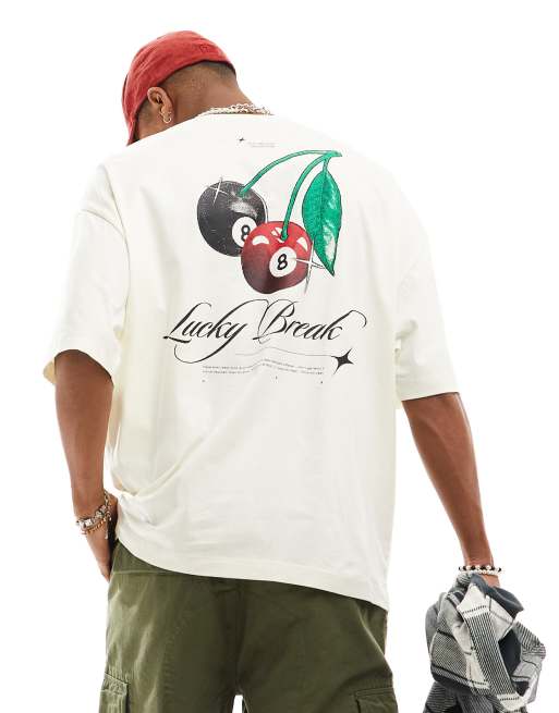 ASOS DESIGN – T-shirt oversize w kolorze tofu z nadrukiem wisienek na plecach