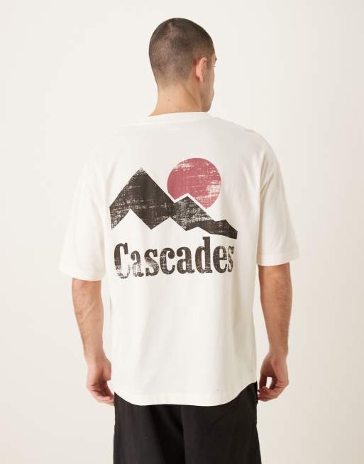 ASOS DESIGN – T-shirt oversize w kolorze złamanej bieli z grafiką z napisem „Cascades”