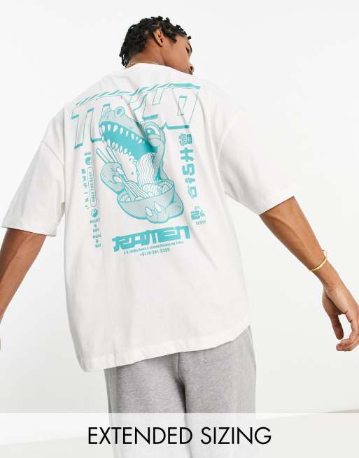 ASOS DESIGN – T-shirt oversize w kolorze złamanej bieli z nadrukiem dinozaura na plecach