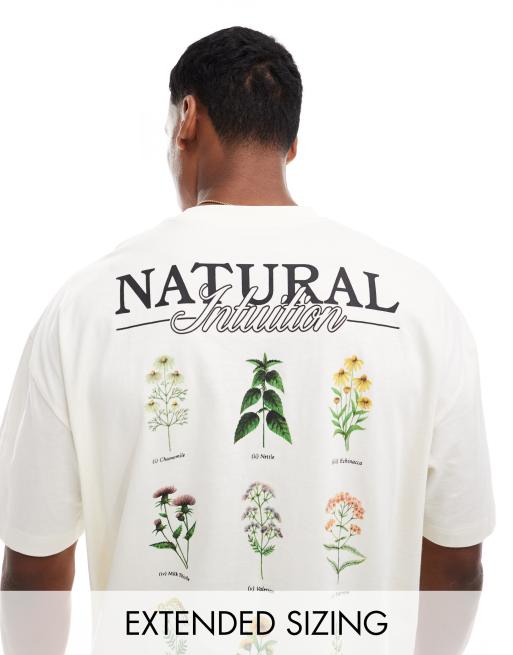 ASOS DESIGN – T-shirt oversize w kolorze złamanej bieli z nadrukiem kwiatów na plecach
