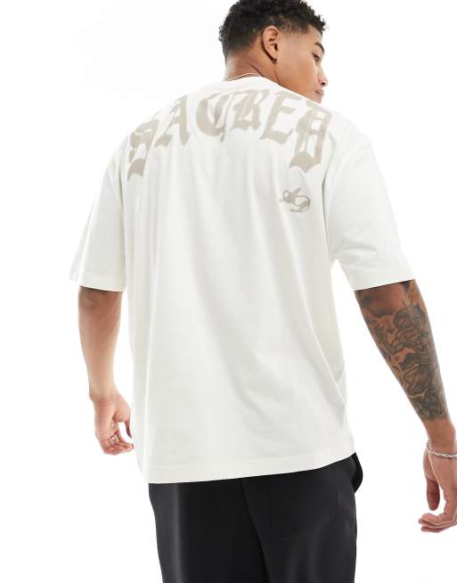 ASOS DESIGN – T-shirt oversize w kolorze złamanej bieli z nadrukiem tekstowym na plecach