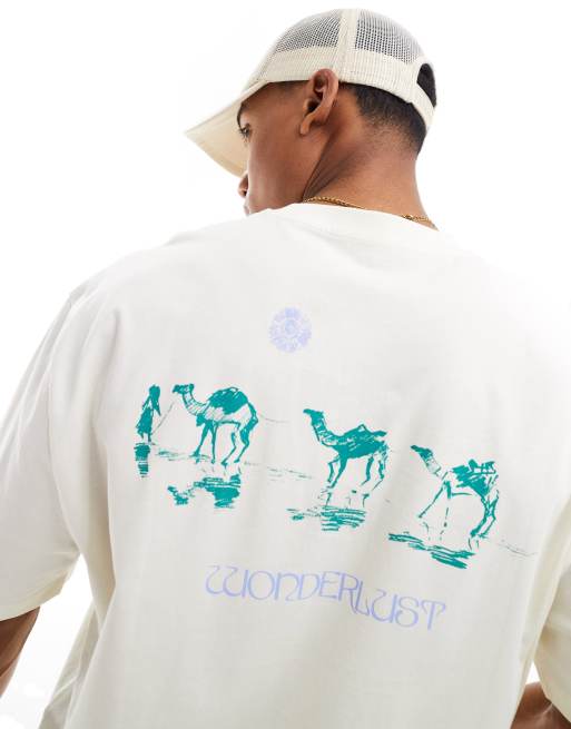ASOS DESIGN – T-shirt oversize w kolorze złamanej bieli z nadrukiem wielbłądów na plecach