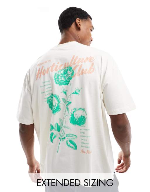 ASOS DESIGN – T-shirt oversize w kolorze złamanej bieli z nadrukiem z przodu i z tyłu