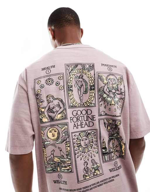 ASOS DESIGN – T-shirt oversize w spranym różowym kolorze z astrologicznym nadrukiem na plecach