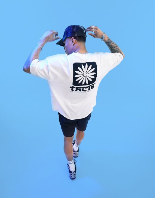 ASOS DESIGN – T-shirt oversize w kolorze ecru z motywem kwiatka na plecach