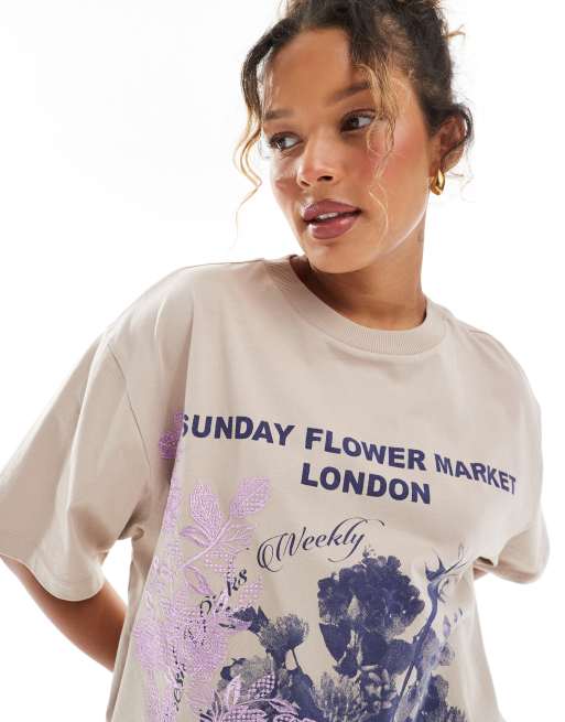 ASOS DESIGN – T-shirt oversize z haftowaną wstawką i grafiką z motywem kwiatów