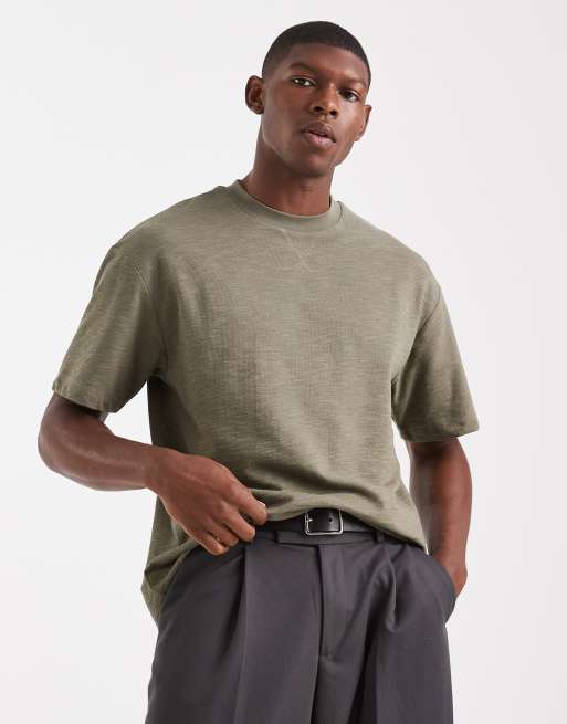 ASOS DESIGN – T-shirt oversize z materiału bouclé w kolorze khaki