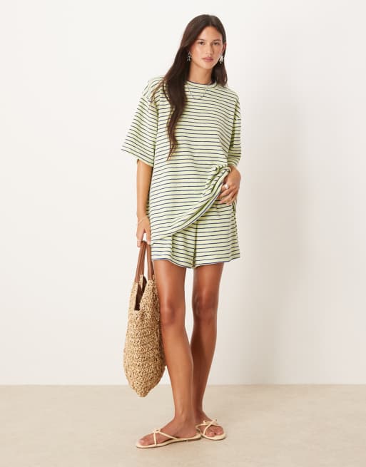 ASOS DESIGN – T-shirt oversize z materiału frotté w żółte paski, część zestawu