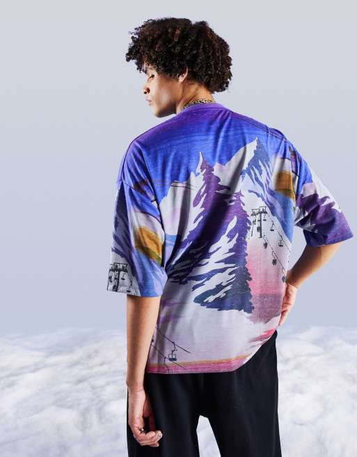 ASOS DESIGN – T-shirt oversize z nadrukiem gór na całej powierzchni