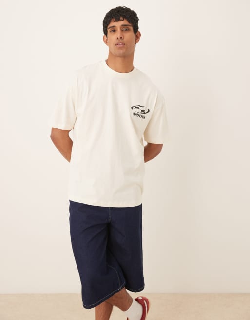 ASOS DESIGN – T-shirt oversize z nadrukiem z przodu i na plecach w kolorze złamanej bieli