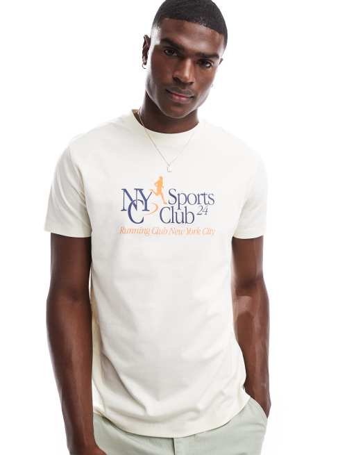 ASOS DESIGN – T-shirt w kolorze złamanej bieli z nadrukiem na piersi