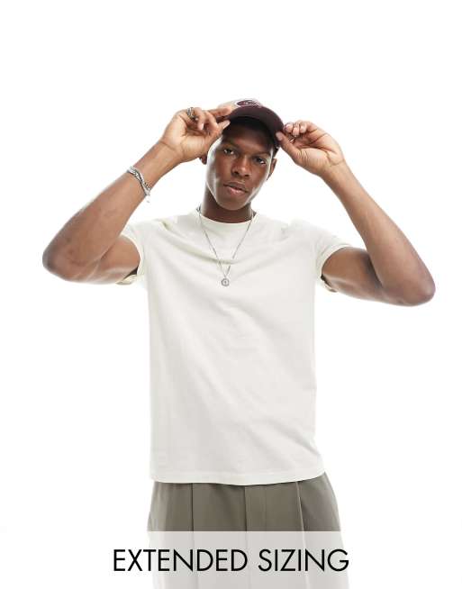 ASOS DESIGN – T-shirt z okrągłym dekoltem i podwiniętymi rękawami w kolorze ecru