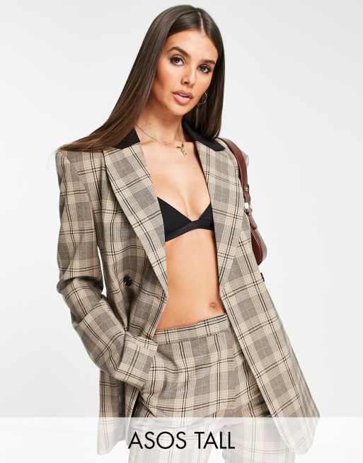 ASOS DESIGN Tall – Brązowa dwurzędowa marynarka w kratę