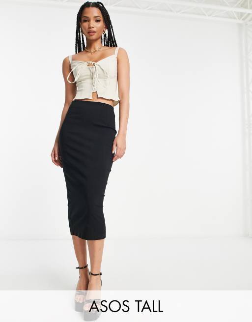 ASOS DESIGN Tall – Czarna, dopasowana spódnica ołówkowa midi z podwyższonym stanem
